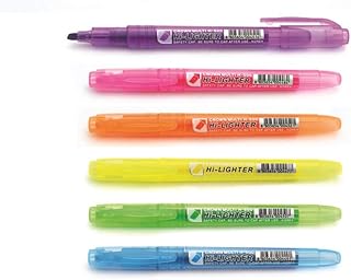 Crown H-500 Textmarker, Keilspitze, schmal, 6 Stück, mit leuchtender fluoreszierender Tinte, Gelb, Grün, Pink, Orange, Blau und Violett, gemischt