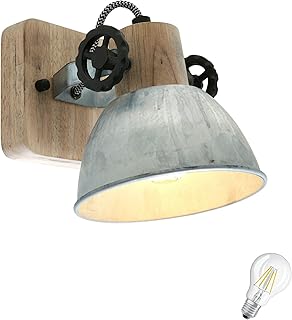 STEINHAUER 7968NI Deckenlampe Retro Vintage Industrie Holz Metall Lampe Wandleuchte 1 flammig Nickel,Edison Filament Retro 7W LED nicht dimmbar