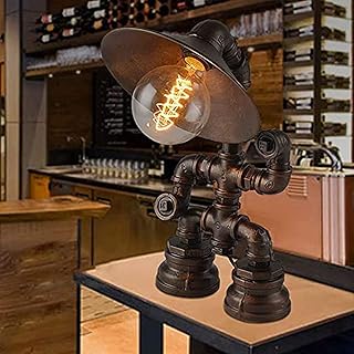 QXXZ Vintage Wasserleitungslampe Roboter Tischlampe,Steampunk Retro Industrie Eisen Shisha Tischleuchte für Nachttisch (Ohne Glühbirne) B