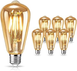 Edison Vintage Glühbirne, Edison LED Lampe Warmweiß E27 6W ST64 Retro Glühbirne Vintage E27 Led Vintage Ideal für Nostalgie und Retro Beleuchtung im Familie Hotel Bar usw - 6 Stück