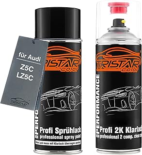 TRISTARcolor Autolack 2K Spraydosen Set für Audi LZ7H Meteorgrau Metallic Basislack 2 Komponenten Klarlack Sprühdose