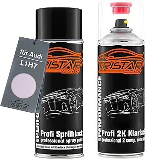 TRISTARcolor Autolack 2K Spraydosen Set für Audi C9 Perlmuttweiss Metallic/Perlmutt Weiss Metallic Grundlack Basislack 2 Komponenten Klarlack Sprühdose