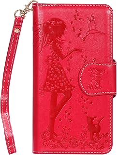 Kompatibel mit Schutzhülle iPhone 6S Plus/6 Plus Hülle Lederhülle Handyhülle,Prägung Floral Blumen Mädchen Katze Vögel PU Lederhülle Flip Hülle Cover Ständer Etui Wallet Tasche Case Schutzhülle,Rot