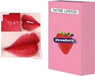 Lipstick Cigarette Cotton Swab Lipstick, Durable Waterproof Liquid Non-Stick Lipstick, Long Lasting Lip Gloss Cotton Swab Matte Tattoo Lipstick Tobacco Box Set,Easy to Carry (Strawberry Red)