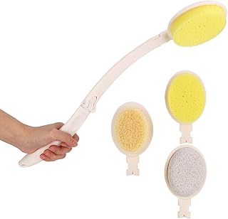HERCHR Trockenbürste, Faltbare Badebürste mit 3 austauschbaren Köpfen für Rücken, Körperbürste Rückenbürste 34 cm