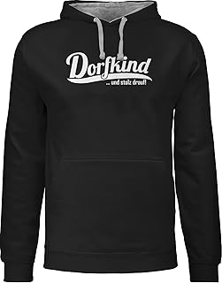 Sprüche Statement mit Spruch - Dorfkind und stolz Drauf Weiss - Hoodie zweifarbig und Kapuzenpullover für Herren und Damen