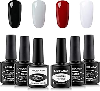 Lagunamoon Gel Nagellack UV LED, Auswahl von 4 Farben mit Base und Top Coat Themenset 6pcs Maniküre Kit Starterset Gift, White Red Black Color Gel Polish Soak off 8ML - Poker
