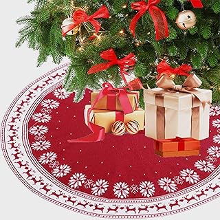 Weihnachtsbaumrock 91,4 cm mit weißem Schneeflocken-Druck, rustikale Weihnachtsdekoration, schneerote und weiße Baumrock für Feiertage, Party, Weihnachtsdekoration, Schneeflocken-Hirschmuster