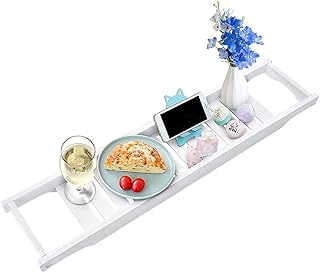 Amazon-Marke Badewannenablage, WeißBambusBadewannenregal aus (77 x 17 x 7 cm) Wannenbrücke, mit badewannentablett, 100% natürliche Bambus badewannenbrett Tablett, Badewannenablage 【DE Lieferung】