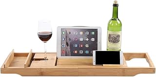 YCOCO Badewannenablage aus Bambus, erweiterbar, für Luxus-Badewanne, mit Ablage, für Bücher, Telefon, iPad, Wein, Seife