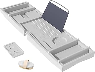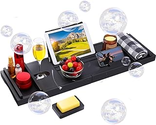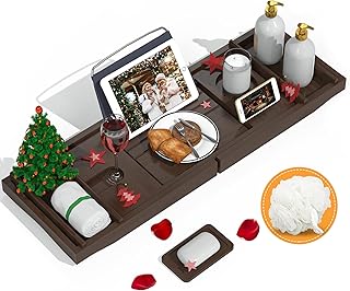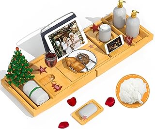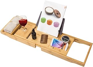 Domax Badewannenablage aus Bambus, erweiterbar, für Luxus-Badewanne, mit Buchhalter und Seifenschale