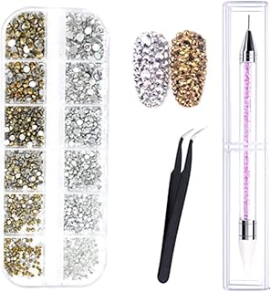 Nuosen 3360 Stücke Strasssteine Nail Art, 6 Größen Runde Glitzersteine Flache Crystal Edelsteine mit Pickup Pinzette und Picking Pen für DIY Handwerk Nägel Kleidung